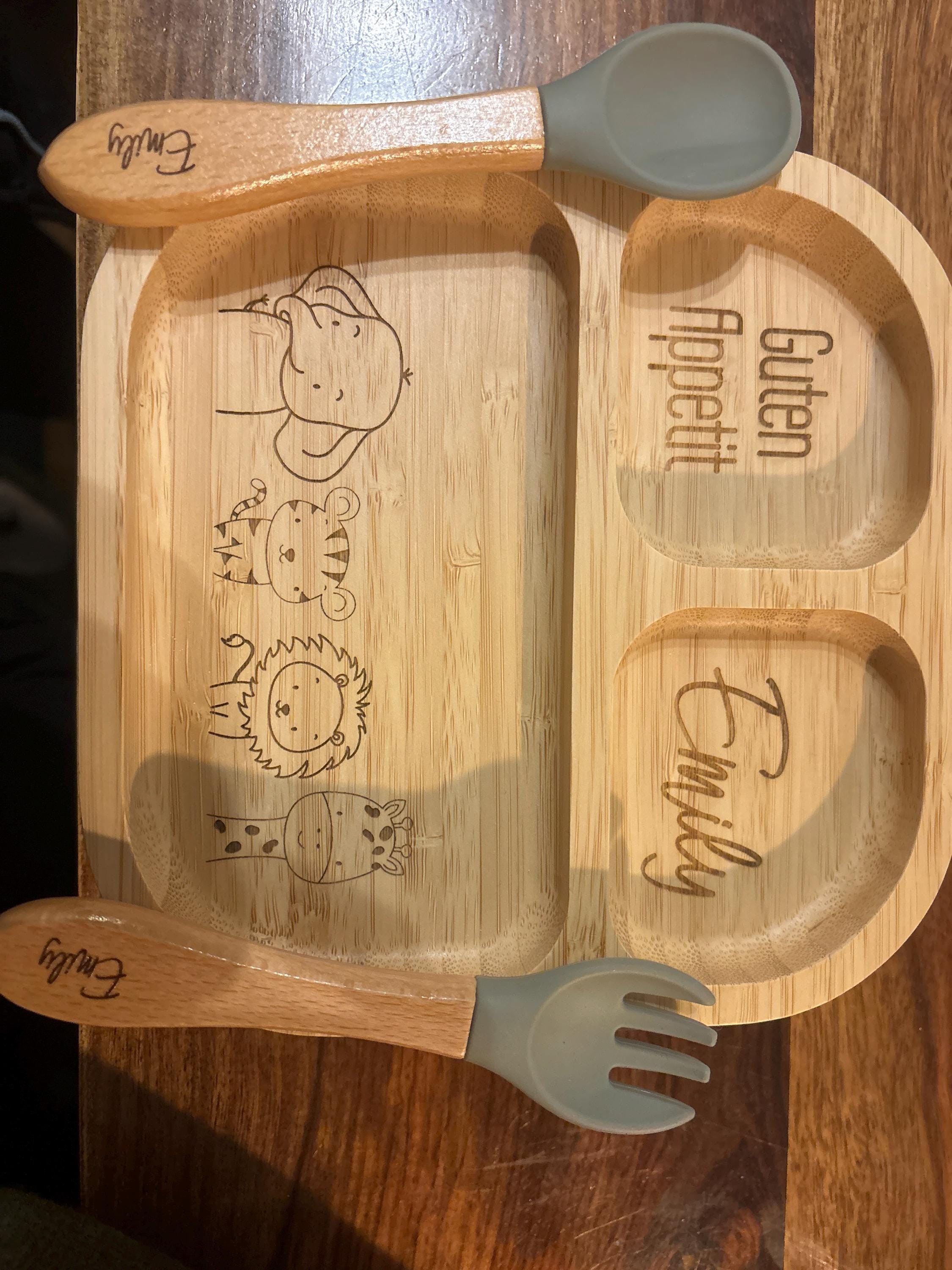 Sehr toller Teller, schön verarbeitet und super süßes Design! Und das Besteck ist auch super. Unsere Maus liebt es & wir auch. 🫶🏼